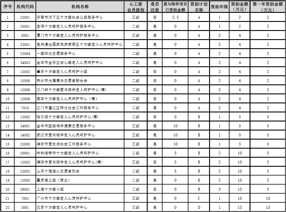 2019年爱与陪伴项目经过初审、项目计划书审核/数据审核、路演、实地考察、终审的综合评审,获得资助机构的名单、资助计划和资助金额公示:
