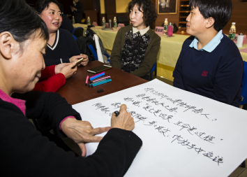 在研讨会环节中,展览路街道十方缘小组负责人普雪兰老师首先分享了两年来在社区进行十方缘爱与陪伴服务的宝贵经验。接下来,四个讨论小组就“如何在社区开展老人心灵呵护服务”进行了研讨。大家提出,积极开展户外陪伴或者活动站集体陪伴,推广邻里陪伴的模式,让年轻的老人陪伴年长的老人,培训社区的兴趣团体,用生活方式感染更多的人,传播爱与陪伴的文化。来自回龙观的周岚老师表示,将在回龙观组建十方缘小组,邀请社区里的大爷们参与服务,发挥他们的正能量。海淀区中关村小组的义工们也来到现场,积极参与讨论,把好的经验带回到自己的小组,为海淀区中关村社区小组的标准化、专业化发展奠定基础。