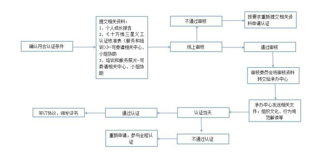 提交认证申请后,经过北京十方缘公益基金会或北京十方缘公益基金会授权的组织审核(三个工作日内)通过后,书面通知参加认证义工及推荐认证地点。
