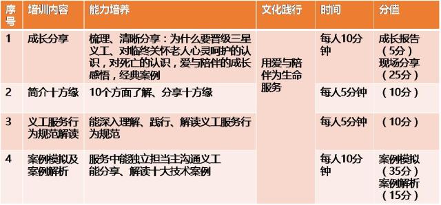 2.从义工成长角度来看,三星义工认证的过程即是分享、庆祝和感恩自己在临终老人心灵呵护服务一路走来的生命成长的过程,也是彼此唤醒、见证、以心印心的过程,看到自己更多的成长空间,一起获得生命的喜悦成长。