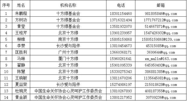 1.通过十方缘老人心灵呵护服务质量认证的组织;